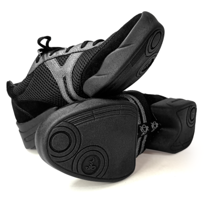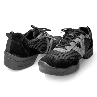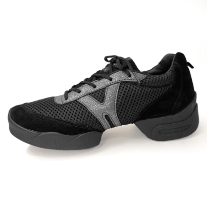 Zapatillas de practica combinadas en gamuza negra con detalle en cuero plata, plataforma dividida con burbujas de aire