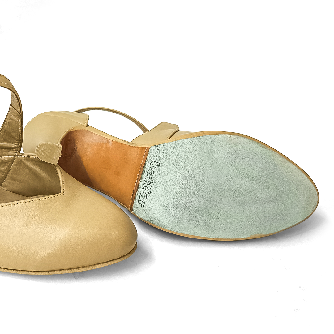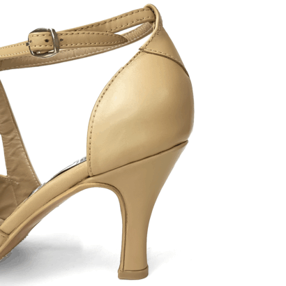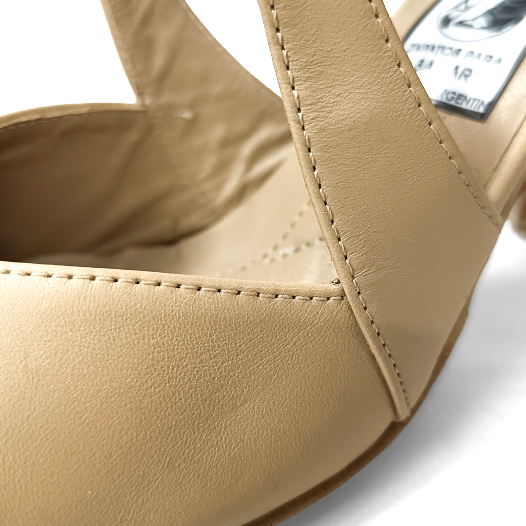 Todo en cuero color nude. Taco 7 cm. Suela de cromo